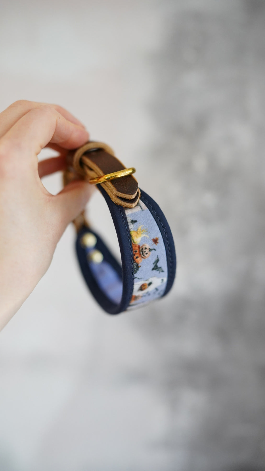 - Soft flexible fabric collar with straps